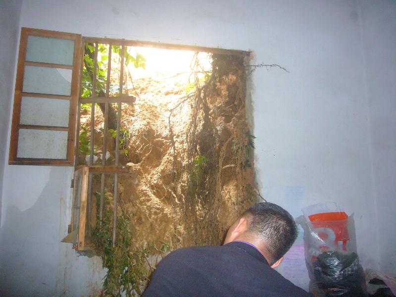 2016年7月5日,通城县纪委监察局驻沙堆镇精准扶贫工作组组长罗岗察看港背村11组刘成新房屋倒塌现场