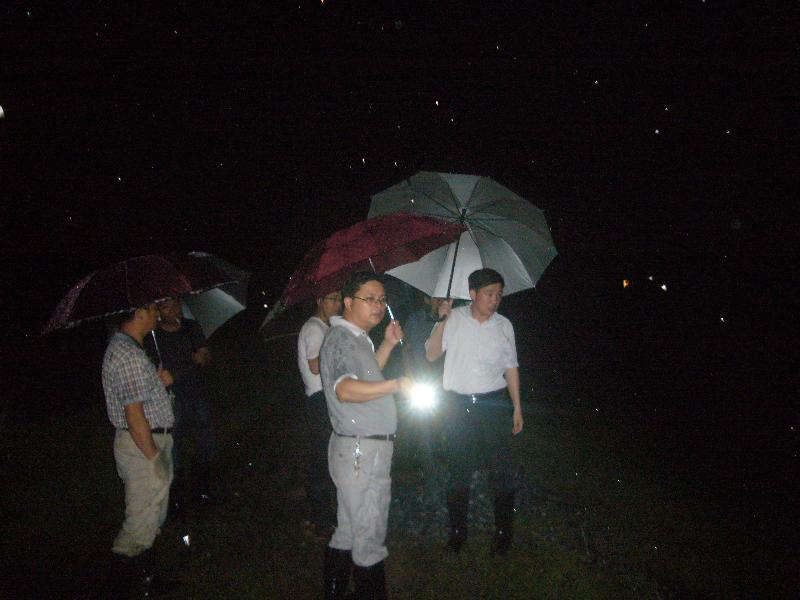 2016年7月5日晚,通城县县委常委、县纪委书记王能强到沙堆镇堆山村毛栗堰水库进行督查
