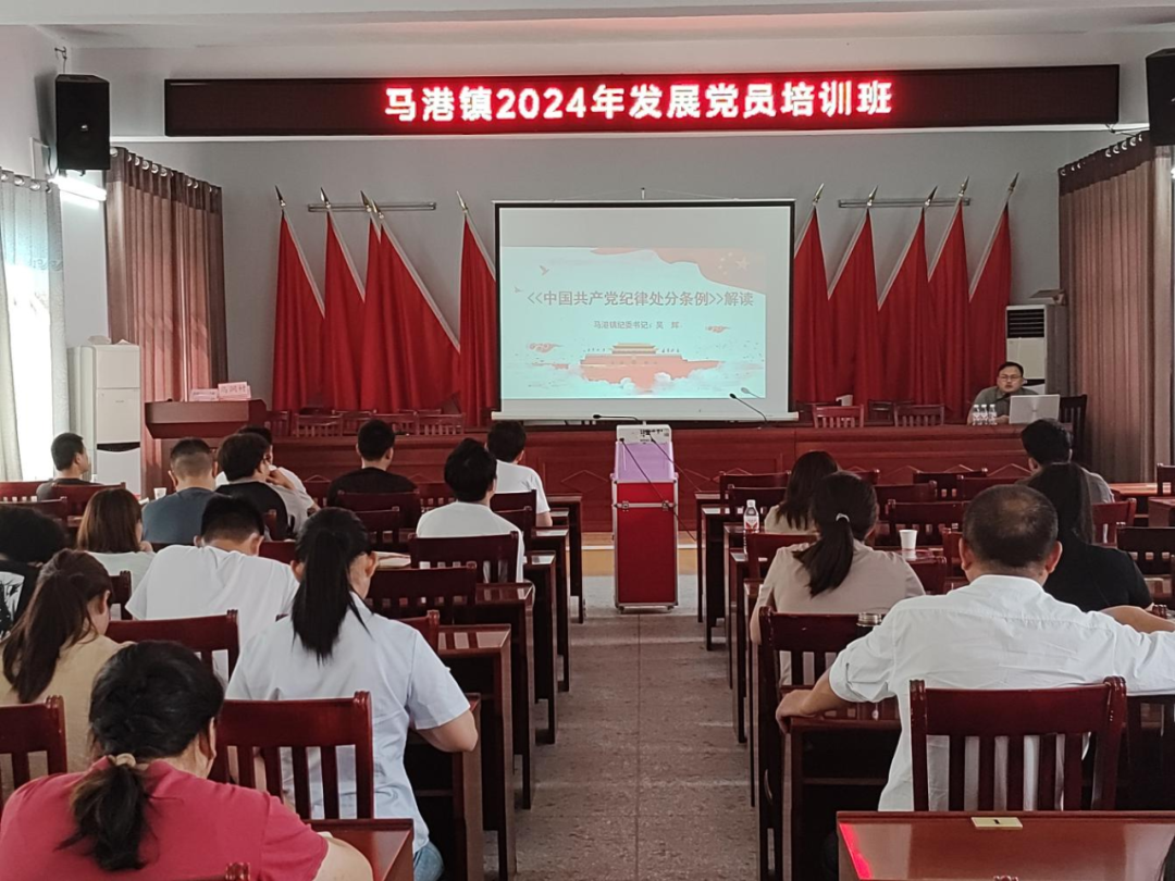 5月20日,马港镇举办2024年发展党员培训班,镇纪委为参加培训的成员讲授专题廉政党课,要求全体培训对象带头学法、尊法、守法、敬法,要把党章党纪和法律法规装在心里,时刻自警自省、慎独慎行。