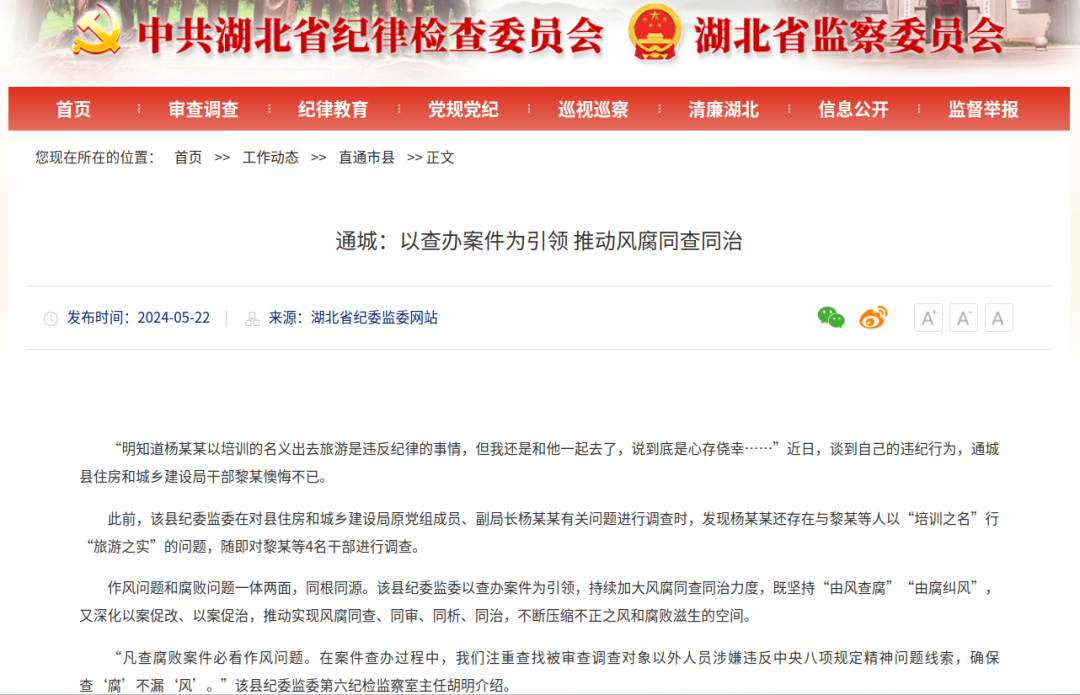 (5月22日)省纪委监委网站|通城:以查办案件为引领 推动风腐同查同治