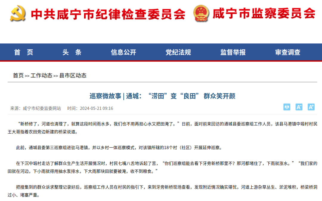 (5月21日)市纪委监委网站|通城:“涝田”变“良田” 群众笑开颜