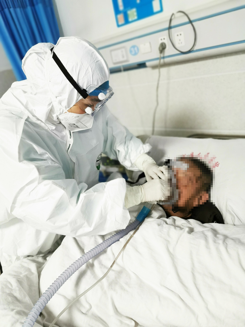 “我是党员,让我来。”从事麻醉工作近20年的胡继军主动请缨到抗疫一线,为重症患者进行“气管插管”。