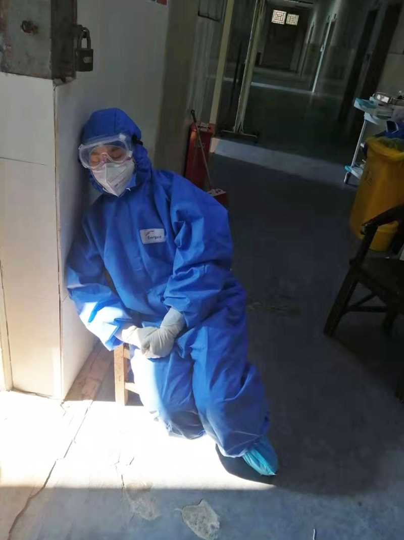 “没事,我就是有点累,眯一下就可以继续战斗。”连续30来个小时没有合眼,没吃过一餐正经饭的感染三区护士吴鑫挨着椅子就睡着了。没有时间担心,没有时间害怕,没有时间给家人打一个电话……