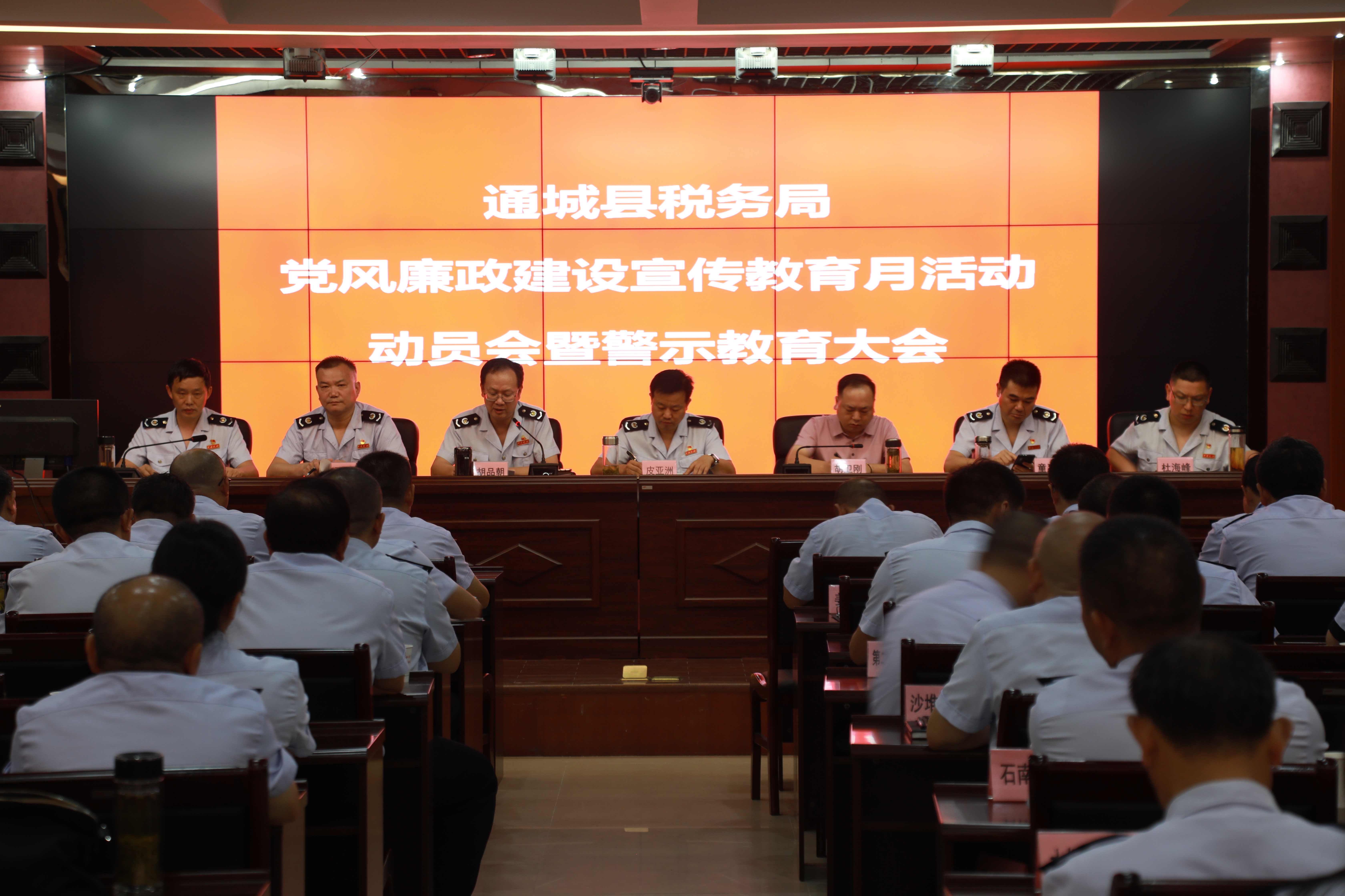 8月25日,通城县税务局召开2022年党风廉政建设宣传教育月活动动员会暨警示教育大会,县局党委班子成员,机关党支部全体党员,各分局(所)支委成员参加。