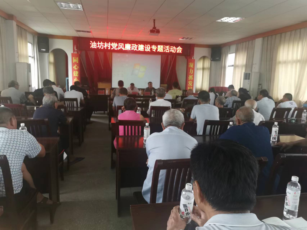 7月18日,隽水镇纪委在油坊村举行党风廉政建设专题活动会。会上,油坊村全体党员干部深入学习了党章党规党纪等相关知识,观看了警示教育片《勾兑》,县委党校相关负责人讲授了廉政党课。这次活动进一步增强了油坊村党员干部的纪法意识,为油坊村清廉村居建设打下了坚实的思想基础。