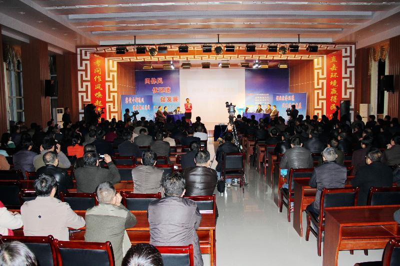 此次电视问政节目由县纪委监察局、县纠风办、县广电局联合举办,以“问作风·优环境·促发展”为主题,通过主持人考问、现场评议等方式进行。县住建局、安监局、交通局、环保局、城管执法局、工商局等6家单位负责人在现场接受“考问”。