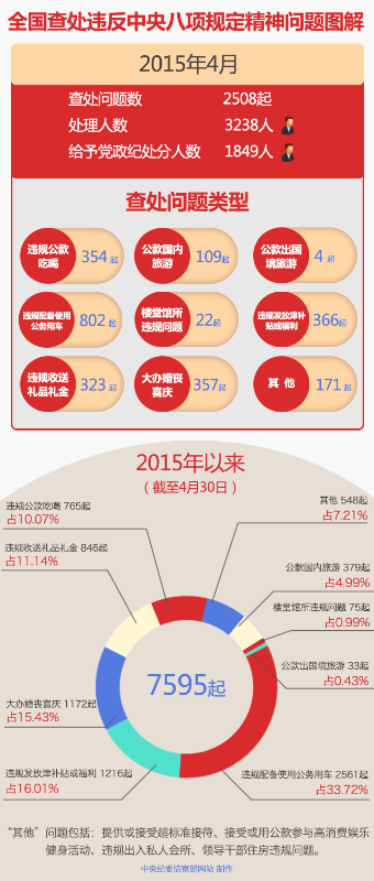2015年4月全国查处违反中央八项规定精神问题2508起