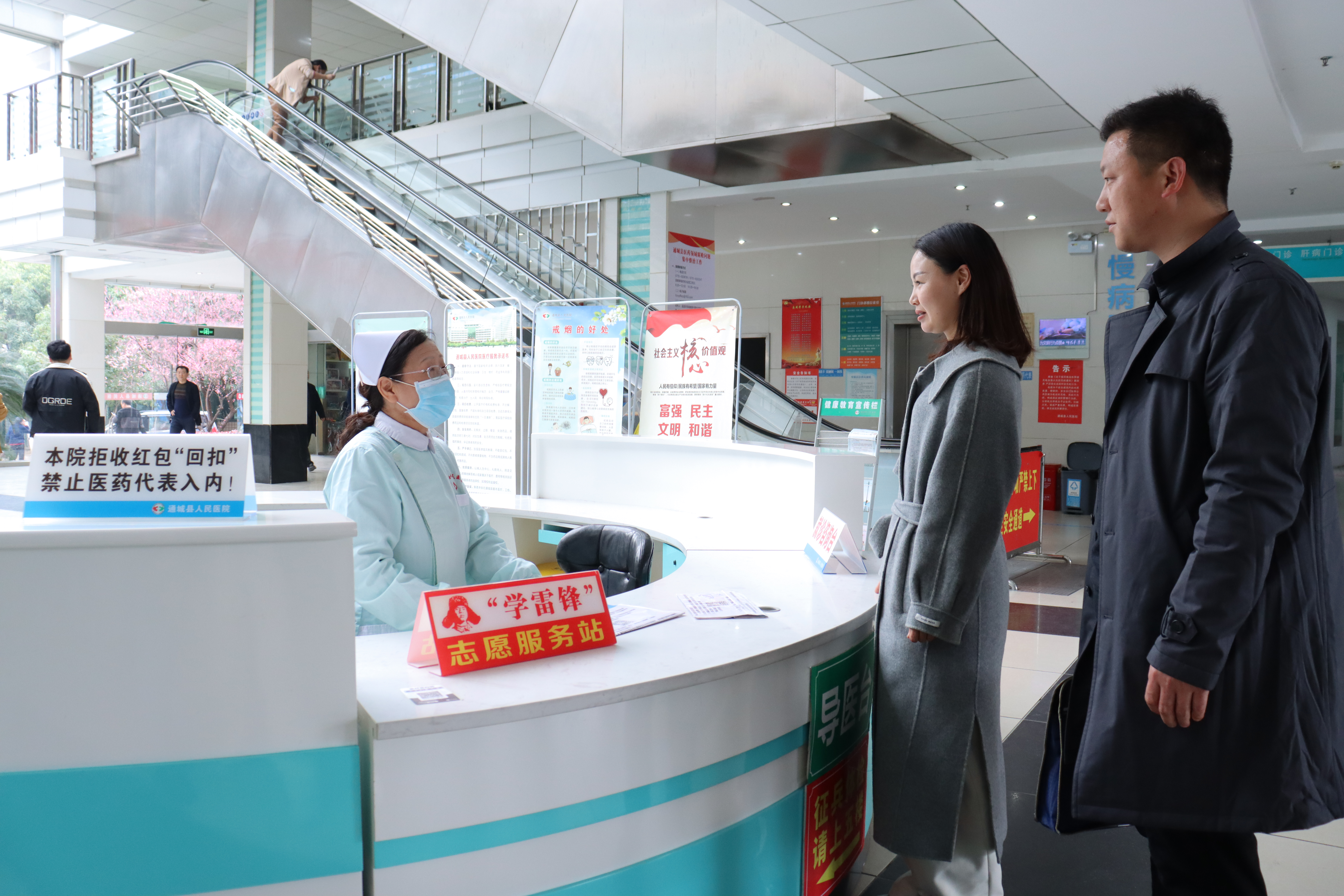 该县纪委监委紧盯群众急难愁盼问题,组建检查组对医院人员到班到岗、工作状态、医德医风等情况进行重点抽查,着力提升群众看病就医获得感、满意度。图为派出第二纪检监察组在县人民医院开展廉情走访。