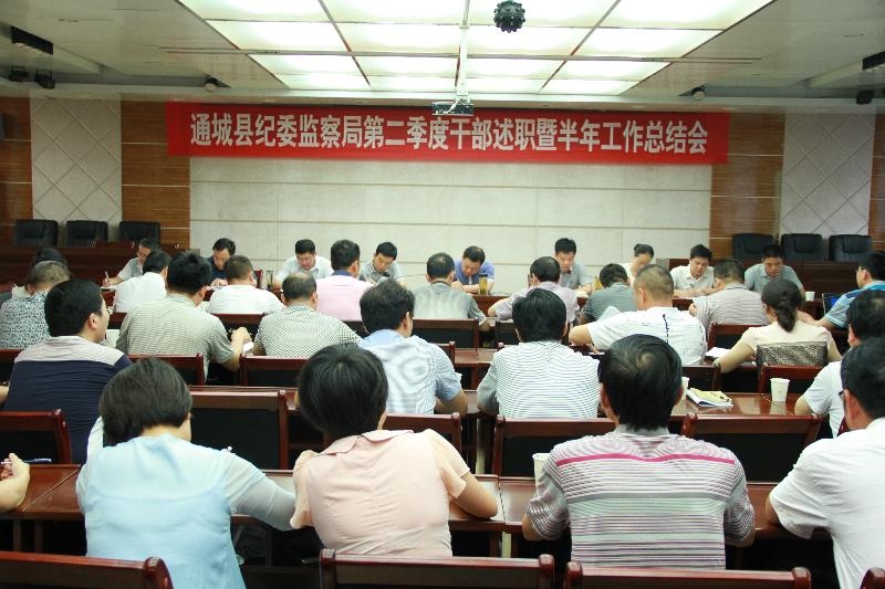 县纪委监察局第二季度干部述职暨半年工作总结会现场
