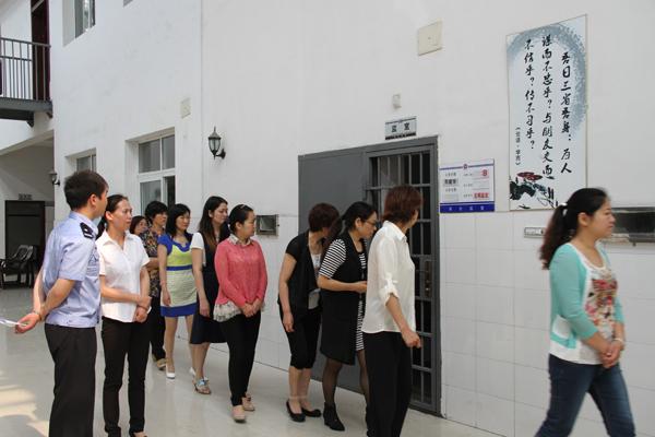 图为领导干部家属参观通城看守所监区
