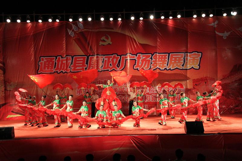 6月29日晚,通城县银山广场人头攒动、热闹非凡,12支广场舞代表队用她们优美绚丽的舞姿为当地干部和群众带来一场廉政广场舞展演盛宴。县领导王能强、吴自强、朱艳芳、喻玉平、汪教明出席并指导,4000多名干部群众观看了展演。