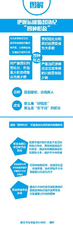 中共中央政治局常委、中央纪委书记王岐山日前在福建调研时强调,全面从严治党,严明党的纪律要把握运用监督执纪“四种形态”。为了让广大党员干部更好的理解监督执纪“四种形态”,本网依据王岐山同志在福建调研时讲话精神制作了“图解把握运用监督执纪‘四种形态’”,图解如下。