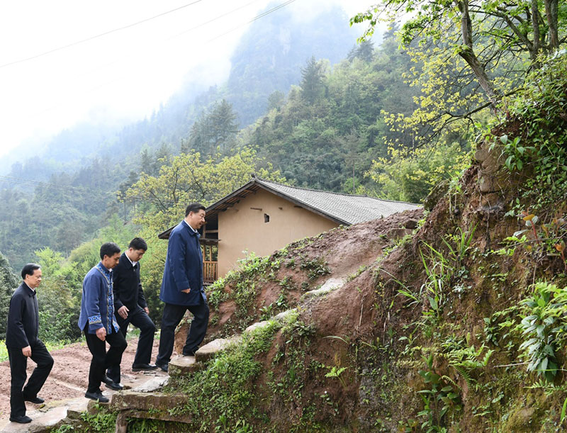 这是4月15日下午,习近平在石柱土家族自治县中益乡华溪村察看自然环境、村容村貌。 新华社记者 王晔 摄