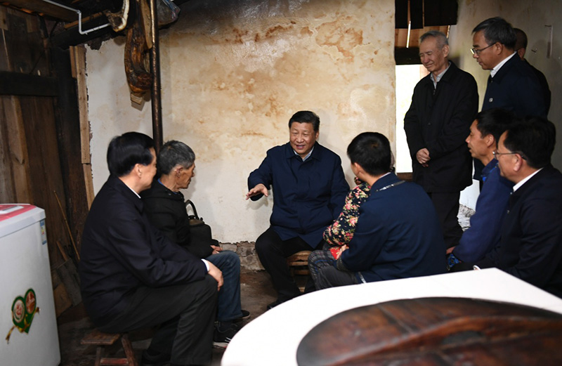 这是4月15日下午,习近平在石柱土家族自治县中益乡华溪村看望贫困户谭登周一家。 新华社记者 谢环驰 摄