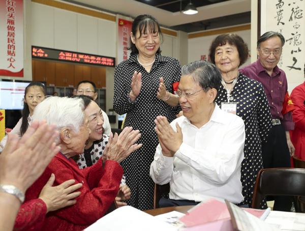 在武汉市百步亭社区调研了解基层党风廉政建设情况,与基层干部群众面对面交流。 新华社记者 丁海涛 摄