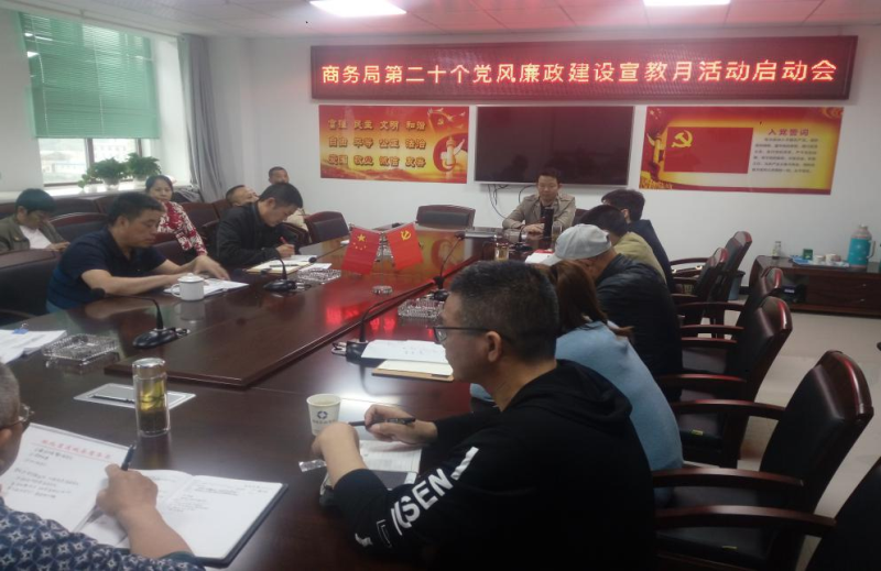 5月6日上午,通城县商务局召开第二十个党风廉政建设宣传教育月活动启动会,参加会议的有局班子成员、局机关全体党员干部、二级单位班子成员。