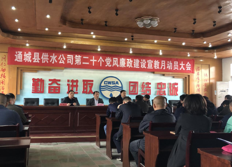 按照中共通城县委办公室关于印发《全县第二十个党风廉政建设宣传教育月活动方案》的文件精神,5月7日上午,通城县供水公司以“支部主题党日”学习教育活动为契机,召开了第二十个党风廉政建设宣传教育月活动动员大会。会议还邀请了城发集团领导为公司全体干部职工作党风廉政教育专题辅导,进一步增强党员干部党性观念、纪法底线意识,筑牢思想道德防线、提高拒腐防变能力。