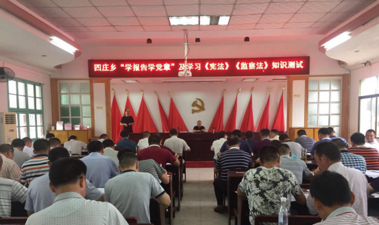 5月18日,四庄乡党委书记吴琳答完最后一题,放下笔就开始在考场上巡视,今天他有两个身份,既是一名普通“考生”,也是这堂考试的监考者。这是四庄乡党委组织的“学报告学党章”及学习《宪法》《监察法》的考试现场,该乡各村支部书记、“第一书记”、全乡机关干部共84人参与了考试。