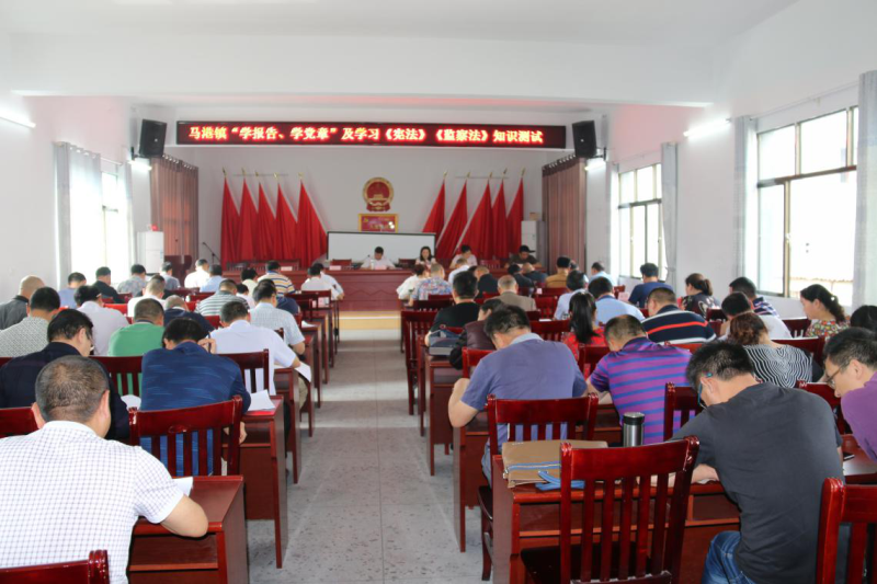 5月24日上午,根据县纪委关于做好“学报告、学党章”及学习《宪法》、《监察法》知识测试有关工作的部署,马港镇结合工作实际,组织镇机关全体干部职工、镇直部门负责人、村(社区)党支部书记约80人开展“学报告、学党章”及学习《宪法》《监察法》知识测试。